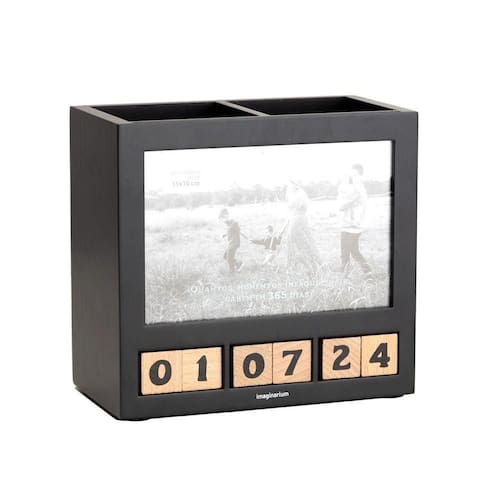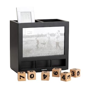 Todo preto em MDF e contando com 8 blocos de madeira com números, pensados para que você possa marcar aquela data especial ou usar como calendário, ele é perfeito para se ter sobre a escrivaninha, já que além de porta-retrato, ele também é um porta-treco super criativo.