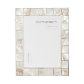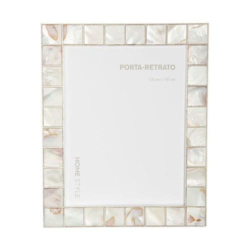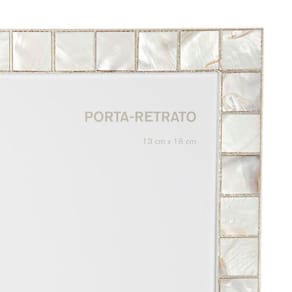 O Porta Retrato Pearl tem dimensões de 10 x 15 cm e é produzido em madeira e madrepérola.