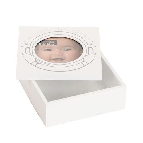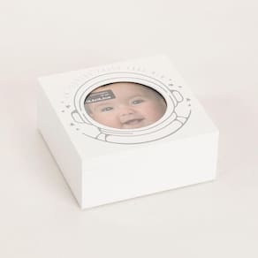 Porta-retrato Registro Pé Do Bebê Na Lua De outro mundo de tanta fofura, nosso Porta-Retrato Registro Pé do Bebê Na Lua vai ajudar a eternizar os primeiros passos dos pequenos de uma forma mais do que especial! Comportando 1 foto de até 10,5 cm x 10,5 cm e contando com um espaço para você registrar o pezinho do seu bebê na Lua, quer dizer, na argila, essa belezinha é muito mais do que um porta-retrato, é uma verdadeira caixinha para guardar as melhores recordações!