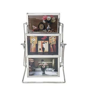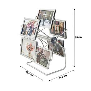 Seu ambiente ficará muito mais bonito e com boas recordações com esse lindo porta retratos.Fabricado em alúminio e vidro, com excelente acabamento, comporta até 12 fotos no tamanho 10x15cm cada. ´Fácil de montar, não necessita nenhuma ferramente e seu sistema giratório do tipo "roda gigante" é uma atração a mais.