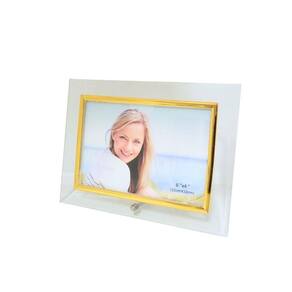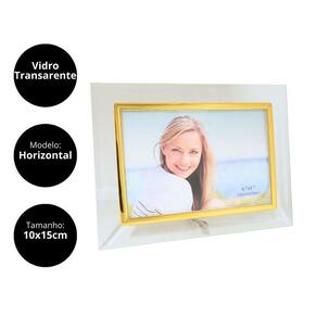 Porta Retrato Vidro Reto Prime Borda Dourada 10x15 Horizontal