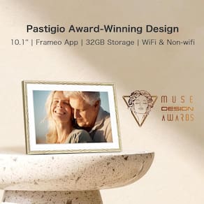 Destaque-se com design e recursos superiores; nossa moldura eletrônica apresenta um design de moldura em relevo premiado, tornando-a uma peça de destaque em casa. Esta moldura fotográfica digital WiFi inteligente Frameo de 10,1 polegadas está equipada com uma tela de toque HD de 1280x800P para imagens vibrantes e claras e operação suave ao toque. Com um suporte magnético para facilitar a troca do modo paisagem ou retrato e opções de montagem na parede, ele oferece opções de exibição versáteis. Projetado para alto desempenho e durabilidade