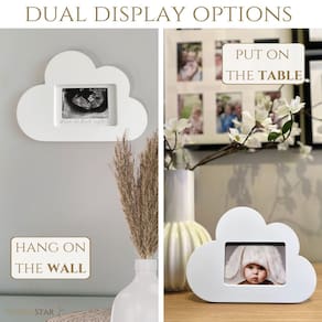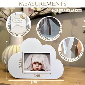 Apresentando o porta-retratos em forma de nuvem branca, uma adição deliciosa à sua casa que captura lindamente memórias queridas. É uma moldura de 3,5 x 5, o que a torna perfeita para uma nova moldura de bebê, moldura de bebê para fotos, moldura de chá de bebê na nuvem, moldura para meninas e meninos ou até mesmo uma moldura comemorativa de animais de estimação para cães e gatos. Esta moldura branca inclui uma placa de dupla face; uma é branca imaculada, enquanto a outra apresenta a frase sincera “Amor à primeira vista” em prata elegante. Com a placa de tapete, esta moldura encantadora pode ser usada como uma moldura de ultrassom para meninas ou meninos ou uma moldura 4x3, permitindo que você capture e aprecie esses momentos inesquecíveis. Este porta-retratos Cloud aprimora a decoração do seu quarto de bebê e oferece opções de exibição dupla. Use-o como uma peça montada na parede ou como uma tela de mesa, tornando-o perfeito para decoração de berçário de menino ou menina, decoração de quarto de criança, decoração de parede fofa, decoração de quarto infantil unissex ou decoração de chá de bebê na nuvem. Sua adaptabilidade garante que ele se encaixe perfeitamente em qualquer decoração de casa, seja em um quarto de menina, decoração extravagante de berçário, decoração em nuvem para berçário, decoração suspensa em nuvem ou decoração de parede memorial. Uma silhueta suave em forma de nuvem pode ser uma bela adição à sua arte de parede em nuvem, recortes em nuvem ou peças centrais de nuvem para chá de bebê. Se você está procurando decorações de nuvem para o quarto, essas nuvens de parede são a escolha perfeita. Essa nuvem flutuante não é apenas um item funcional; é também uma ideia de presente bem pensada. É perfeito para dar de presente para mamãe, revelar o sexo do bebê, presente de chá de bebê para meninas ou meninos, e é uma excelente opção para presentes exclusivos para meninos ou meninas recém-nascidos. Ideal para gestantes, ele se destaca como um dos melhores presentes para mães de primeira viagem e presentes para mães grávidas. Capture e celebre esses momentos preciosos com esta moldura deliciosa! Traga um pedaço do céu para dentro de casa com esta nuvem branca aconchegante e deixe seus momentos preciosos flutuarem em uma nuvem de memórias! - Design de nuvem adorável - Transforme seu espaço com uma nuvem suspensa! Ideal como decoração de nuvem para quarto ou decoração de nuvem para chá de bebê. Linda nuvem de madeira adiciona charme à decoração de berçário de gênero neutro. - Opções de exibição dupla - Esta moldura fotográfica de 3,5 x 5 é uma moldura de parede e mesa. Perfeito para usar como moldura para recém-nascidos, moldura para fotos de bebês, porta-retratos de berçário ou porta-retratos comemorativos para cães. - Inclui tapete de dupla face - um lado é branco, enquanto o outro diz “Amor à primeira vista”. Use esta moldura em forma de nuvem como uma moldura de ultrassom para bebês ou uma moldura 3x4. - Toque divertido e sonhador — Um formato de nuvem suave é uma adição fofa à decoração de seu quarto de bebê com nuvem para meninas ou meninos, decoração de parede de berçário de gênero neutro, recortes em nuvem ou decorações de chá de bebê com tema de nuvem. - Ideia de presente atenciosa — Uma excelente opção para presentes fotográficos, presentes para recém-nascidos, presentes para bebês ou presentes para bebês novos. Os melhores presentes de gravidez para gestantes ou presentes de chá de bebê na nuvem para meninos e meninas.