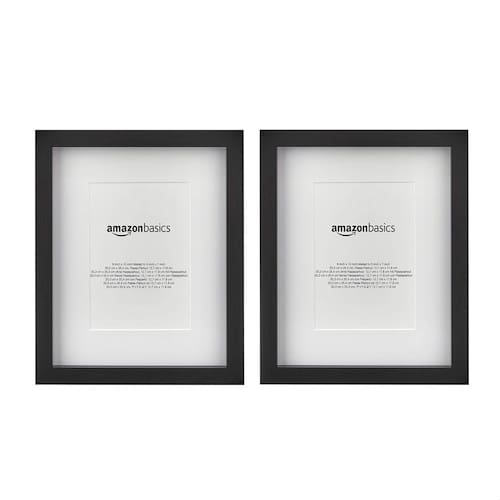 Amazon Basics Porta-retrato retangular 20 x 25 cm e 12 x 17 cm com tapete, pacote com 2, 28,4 x 23,4 cm, preto - Opções de exibição versáteis: estas molduras pretas de 20 x 25 cm podem ser colocadas em mesas com o cavalete traseiro ou penduradas em paredes, horizontal ou verticalmente - Proteja suas fotos: a moldura inclui uma face de vidro durável que protege suas fotos e obras de arte contra poeira, desgaste e danos - Design elegante: as molduras simples e clássicas estão disponíveis em prata ou preto - Conjunto de moldura de tamanho duplo: o conjunto inclui molduras de 20 x 25 cm com tapetes para fotos de 20 x 25 cm e 12 x 17 cm, permitindo que você enquadre facilmente vários tamanhos de impressão e crie uma exibição coesa - Fácil de usar: o cavalete traseiro da moldura é facilmente removível, permitindo que você altere fotos ou obras de arte rapidamente