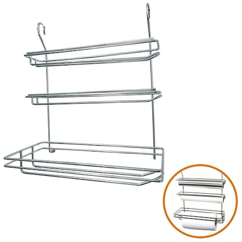 Porta Rolo Triplo Serrilhado Arapuxe O Porta Rolo Triplo Serrilhado Arapuxe é prático, funcional e indispensável para sua cozinha. Este porta rolos une praticidade e resistência. Com sistema inovador serrilhado que facilita o processo de corte. Possui 3 compartimentos para papel alumínio, plástico filme e papel toalha. Sofisticação e praticidade em um único produto. Características: - Marca: Arapuxe - Modelo: 1601 - Acabamento: Aço cromado Dimensões: - Largura: 33cm - Altura 39cm - Profundidade: 17,5cm