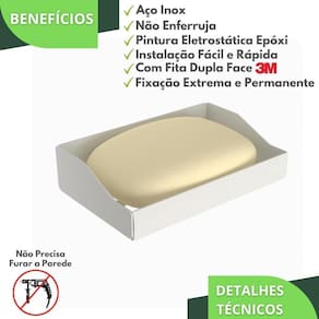 Porta Sabonete Adesivo De Parede Banheiro Branco DF O Porta Sabonete Adesivo Dupla Face foi projetado para quem não quer furar a parede e busca por qualidade na fixação e boa aderência em ambientes molhados. Prezando pela sofisticação e elegância, cada traço do produto foi cuidadosamente desenhado para deixar seu banheiro com um visual clean e sofisticado.
