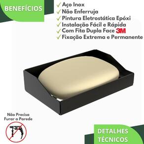 O Porta Sabonete Adesivo Dupla Face foi projetado para quem não quer furar a parede e busca por qualidade na fixação e boa aderência em ambientes molhados. Prezando pela sofisticação e elegância, cada traço do produto foi cuidadosamente desenhado para deixar seu banheiro com um visual clean e sofisticado. Com um design minimalista, o preferido pelos arquitetos nos últimos tempos, o Porta Sabonete é fabricado utilizando aço inox com acabamento em Pintura Eletrostática Epóxi Fosca proporcionando maior durabilidade, resistência e garantindo que não ocorrerá oxidação nem ferrugem. A fixação é feita com fita dupla face da marca 3M produzida sob medida personalizada para o produto, garantindo mais firmeza e estabilidade. Após remover a fita e colar o produto na parede, aguarde 20minutos e em seguida o produto já pode ser utilizado. BENEFÍCIOS Fixação Extrema e Permanente Substitui Parafusos, sem fazer Furos e Sujeiras Aplicação Fácil, Rápida e Segura Acabamento Premium: Corte Realizado à Laser Material de Aço Inox Resistente a Água Não Enferruja e não sofre oxidação ESPECIFICAÇÕES TÉCNICAS Material: Aço Inox Acabamento: Pintura Eletrostática Epóxi Cor: Preto Fosco Tipo de Fixação: Fita Dupla Face MEDIDAS Altura: 3,5cm Largura: 12cm Profundidade: 7,5cm ITENS INCLUSOS 1 Porta Sabonete com Fita Dupla Face Marca: S3GShop