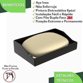 Porta Sabonete Adesivo De Parede Banheiro Preto DF O Porta Sabonete Adesivo Dupla Face foi projetado para quem não quer furar a parede e busca por qualidade na fixação e boa aderência em ambientes molhados. Prezando pela sofisticação e elegância, cada traço do produto foi cuidadosamente desenhado para deixar seu banheiro com um visual clean e sofisticado.