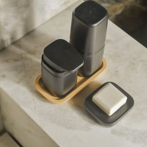 Com um formato compacto, o Porta Sabonete Líquido Aura foi projetado para facilitar o uso diário.