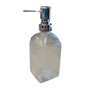 - Cores de aplicador disponíveis: Cobre, Dourado e Prata ( escolha a cor de sua preferência e adicione no carrinho de compras ) - Altura total da Saboneteira: 18,5 cm - Largura: 7 cm - Capacidade de sabonete líquido: 450 ml - Material: Vidro