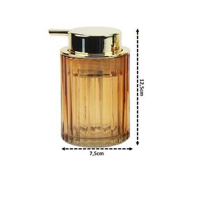 Toque de Luxo no Seu Banheiro! Porta Sabonete Líquido em Vidro Âmbar Relevo com Tampa Touch Dourado - 260ml