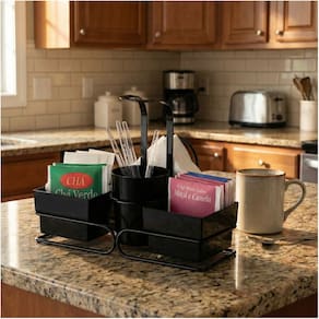 Um único produto que organiza os itens necessários para servir chá ou café.