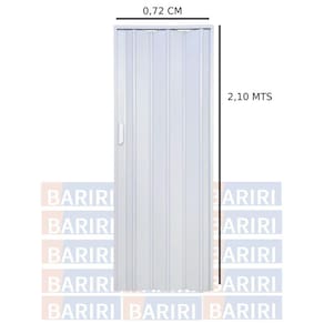 A porta sanfonada de PVC é o produto ideal para quem tem pouco espaço e precisa de uma solução na divisão de ambientes em apartamentos e casas pequenas. Por ser retrátil, esse modelo economiza espaço na sua abertura e fechamento, possibilitando a instalação em cozinhas, banheiros, lavanderias, despensas, salas de estar, escritórios, oficinas etc. Acabamento do Puxador: Acompanha Batedor: Não Acompanha Batente: Sim Acompanha Dobradiça: Não Acompanha Fechadura: Sim Acompanha Guarnição: Não Acompanha Manual de Instalação: Sim Acompanha Puxador: 01 Acompanha Trinco: Sim Altura: 210 Ambiente Principal: Cozinha Ambientes Recomendados: Externo;Interno Cor: Neve Cor do Batente: Branco Cor do Produto: Neve Cor do Vidro: Dimensão da Máquina da Fechadura: 2 Durabilidade: 10 Anos Elétrica: Não Escala de Brilho: Fosco Espessura: Espessura do Vidro: Imune à corrosão: Não Imune a Pragas: Sim Informações Complementares: Isolamento Acústico: Não Isolamento Térmico: Não Itens Inclusos: 1 Estrutura Sanfonada, 1 Trilho, 2 Batentes, Kit Ferragens e Manual de Instruções Lado de abertura: Definido na instalação Largura: 72 Largura do Batente: 2.5 Linha ou Coleção: Bariri EKO Premium Manual de Montagem e Instalação: https://cdn2.madeiramadeira.com.br/atributo/bariri-pvc/1029785-bariri-porta1-1.pdf Material da Dobradiça: Plástico Material do Batente: PVC Material do Puxador: Necessita Montagem: Sim Número de Folhas: Origem do Produto: Nacional Peso: 4.16 Possui Grade: Não Recomendações de Uso, Manutenção e Limpeza: Limpeza com água e sabão neutro Resistência à Maresia: Sim Resistência ao Fogo: Sim Tamanho: 210x72cm Textura da Porta: Lisa Tipo de Dobradiça: Simples Tipo de Madeira: Tipo de Parede: Tipo de Porta: Sanfonada Tipo de Puxador: Externo Tipo de Vidro: Vidro incluso: Não Voltagem: Marca: Bariri