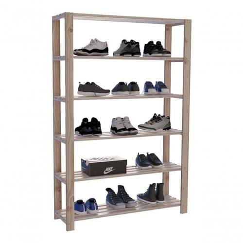 Estante arara com prateleiras e estrutura em madeira maciça de Pinus.