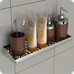 O Porta Shampoo Adesivo Dupla Face foi projetado para quem não quer furar a parede e busca por qualidade na fixação e boa aderência em ambientes molhados. Prezando pela sofisticação e elegância, cada traço do produto foi cuidadosamente desenhado para deixar seu banheiro com um visual clean e sofisticado. Com um design minimalista, o preferido pelos arquitetos nos últimos tempos, o Porta Shampoo é fabricado utilizando aço inox com acabamento polido em alto brilho proporcionando maior durabilidade, resistência e garantindo que não ocorrerá oxidação nem ferrugem. A fixação é feita com fita dupla face da marca 3M produzida sob medida personalizada para o produto, garantindo mais firmeza e estabilidade. Após remover a fita e colar o produto na parede, aguarde 20minutos e em seguida o produto já pode ser utilizado. Seu processo de acabamento é feito em polimento de alta temperatura, o que garante um alto padrão de brilho, dando um toque especial na decoração do seu banheiro. BENEFÍCIOS Fixação Extrema e Permanente Substitui Parafusos, sem fazer Furos e Sujeiras Aplicação Fácil, Rápida e Segura Acabamento Premium: Corte Realizado à Laser Material de Aço Inox Resistente a Água Não Enferruja e não sofre oxidação ESPECIFICAÇÕES TÉCNICAS Material: Aço Inox Acabamento: Polido em Alta Temperatura Cor: Alto Brilho Tipo de Fixação: Fita Dupla Face MEDIDAS Altura: 3,5cm Largura: 7,5cm Profundidade: 25cm ITENS INCLUSOS 1 Porta Shampoo de Parede com Fita Dupla Face Marca: S3GShop