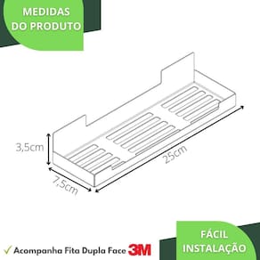 Com um design minimalista, o preferido pelos arquitetos nos últimos tempos, o Porta Shampoo é fabricado utilizando aço inox com acabamento em Pintura Eletrostática Epóxi proporcionando maior durabilidade, resistência e garantindo que não ocorrerá oxidação nem ferrugem.