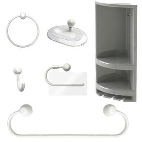 ITENS INCLUSOS 01 Suporte de Canto Para Shampoo 01 Cabide Simples 01 Saboneteira 01 Papeleira 01 Porta Toalha Argola 01 Porta Toalha Bastão 06 Buchas S6 06 Parafusos 3 x 37mm