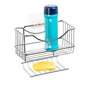 Porta Shampoo Com Saboneteira Cromada Para Parede Adesiva TAMANHO: 11 cm x 19,5 cm x 16 cm