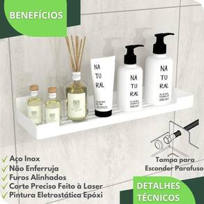 Com um design minimalista, o preferido pelos arquitetos nos últimos tempos, o Porta Shampoo é fabricado utilizando aço inox com acabamento em Pintura Eletrostática Epóxi proporcionando maior durabilidade, resistência e garantindo que não ocorrerá oxidação nem ferrugem.