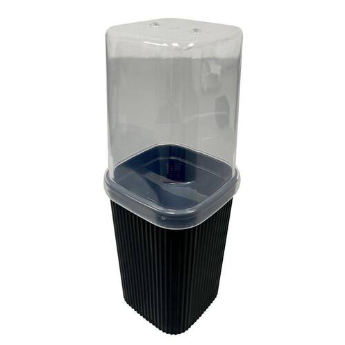Porta Escovas com Tampa Classic Frisos Preto Trás praticidade e beleza para seu lavabo ou banheiro Deselvovido pensando nos banheiros e lavabos mais exigentes que se inspiram em design moderno e inovador. São muito resistentes, não absorvem odor ou cheiro. Fácil limpeza Excelente material e preço justo Volume: 380,0 ml Dimensão: (Comp x Larg x Alt): 7,8x7,8x20,5 cm - Textura canelada. Potes de Excelente Qualidade