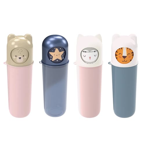 Porta Talher Case Dental Estojo Box Lúdico Multiuso Infantil Personagens - Plasútil - BICHINHOS AZUL