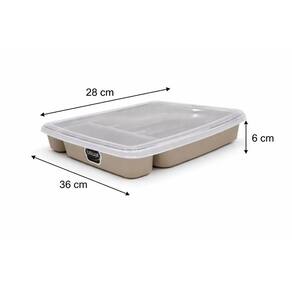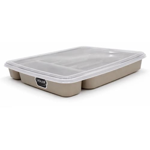 Com cinco compartimentos espaçosos, é ideal para separar e localizar facilmente seus talheres. A tampa inclusa protege contra poeira e sujeira, enquanto o material facilita a limpeza. Compacto e eficiente, é a escolha perfeita para quem busca funcionalidade e organização na cozinha.