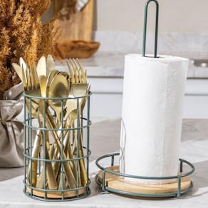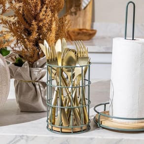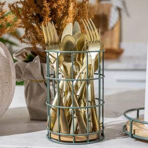 Porta Talheres Copa E Cia Enjoy Verde Porta Talheres Copa e Cia Enjoy Verde - Características Gerais do Produto: - Composição: Madeira; Bambu; Aço Galvanizado - Detalhes: Peça Vendida de Forma Individual.; Design Exclusivo Copa&Cia.; As cores podem sofrer pequenas alterações de cor, variando de monitor para monitor.; Os objetos que ambientam as fotos não acompanham o produto.; As fotos produzidas são apenas como sugestão de uso com as demais peças da coleção.; Design minimalista. - Cuidados: Não Deixar de Molho.; Armazenar em local seco e arejado.; Não podem ser colocados em lava-louças.; Evitar contato com objetos cortantes ou superaquecidos.; Não molhar; Não utilizar solventes, abrasivos ou alvejantes.; Limpar manualmente com pano úmido e detergente neutro. - Dimensões (cm): Altura: 17 cm; Diâmetro: 11 cm Acompanha o produto: - 1 Peça de Porta Talheres Garantia: - 7 dias/30 dias contra defeito de fabricação