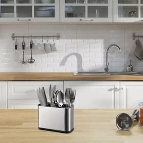 Cuidados e Manutenção: Para garantir a durabilidade e a beleza do seu porta talheres, siga estas instruções simples de cuidados: - Limpe regularmente com água morna e sabão neutro, e seque completamente. Evite o uso de panos ou esponjas abrasivos ou produtos químicos fortes, que podem danificar o acabamento do aço inoxidável.