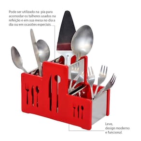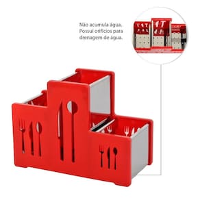 Além disso, o design do porta talheres é moderno e sofisticado, trazendo um toque de estilo para a sua cozinha. O vermelho das laterais em polipropileno pp é vibrante e combina com diversos estilos de decoração.