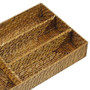 Porta Talheres L'Hermitage 27155 confeccionado em bambu e rattan, materiais naturais que conferem durabilidade e um toque rústico ao ambiente, este porta-talheres possui dimensões de 6 cm de altura por 24 cm de largura e comprimento, oferecendo espaço ideal para acomodar seus utensílios de forma prática e elegante. Além de funcional, seu design sofisticado complementa a decoração, trazendo requinte e charme à sua mesa. Invista no Porta Talheres L'Hermitage e transforme a organização dos seus talheres com qualidade e bom gosto