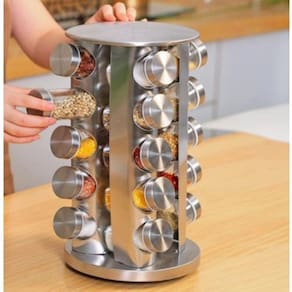 Porta tempero condimento giratório redondo 20 peças inox Porta temperos e condimentos giratório 20 peças de aço e vidro - redondo A cozinha é um dos lugares mais especiais da casa e merece todas as atenções na hora de ser decorada e organizada. O porta temperos é super funcional, prático, tem um formato ergonômico e moderno, podendo armazenar todos seus condimentos de forma correta e em um mesmo local. Tenha a praticidade, organização e beleza que sua cozinha merece Estrutura giratória, fácil de instalar e usar, otimizando espaço de maneira eficiente. Todos os temperos necessários à mão. Características: Possui base giratória: visualize todos os temperos com um simples giro Material: vidro e aço inox Possui 20 potes de 80g Dimensões do produto: Porta tempero: 19,0 x 34,0 x 19,0 cm c x a x l Pote: 10,0 x 5,0 a x l Marca: Quickstore