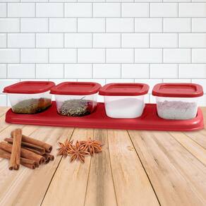 Porta Tempero Condimentos com 4 Potes Transparente e Vermelho PORTA TEMPERO com 4 POTES - VERMELHO