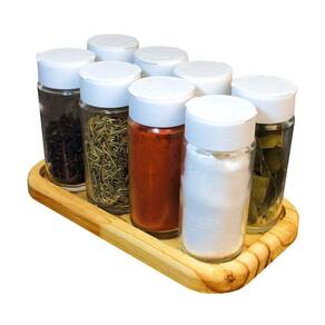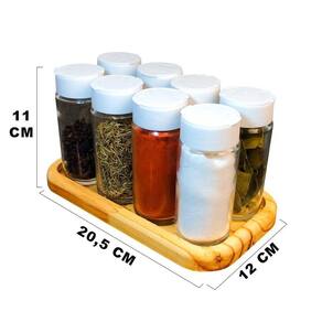 Porta tempero condimentos em madeira ágora - pote de vidro 8 Tampa: branco Atenção, por favor, leia a descrição