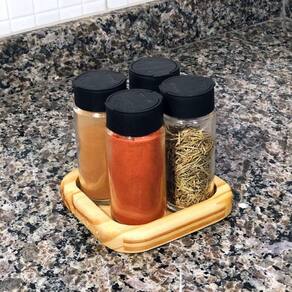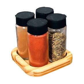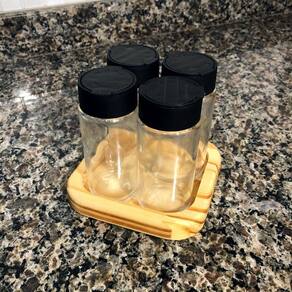 Porta tempero condimentos em madeira - temperos condimentos e especiarias - organizador Potes: preto Atenção, por favor, leia a descrição
