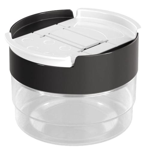 Recipiente plástico para armazenamento de alimentos com capacidade para 140 ml. Ideal para acondicionar temperos. Possui tampa com rosca e 2 sobre-tampas com aberturas independentes, facilitando a dosagem durante o uso na cozinha. É produzido em material atóxico e livre de BPA.
