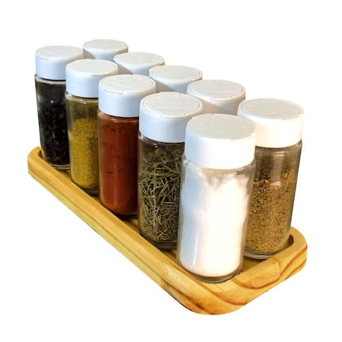 Porta tempero em madeira ágora - pote de vidro 10 frascos Tampa: branco Olá, seja bem vindo a senhora madeira