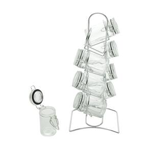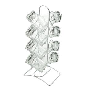 Porta Temperos 8 peças de Vidro com Tampa Hermética e Suporte de Metal Cromado Lyor