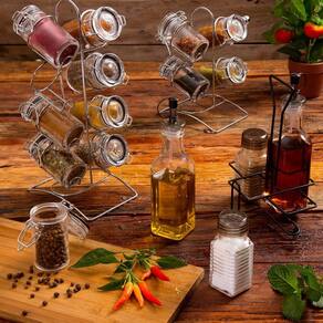 Porta Temperos 8 peças de Vidro com Tampa Hermética e Suporte de Metal Cromado Lyor - Informações