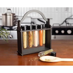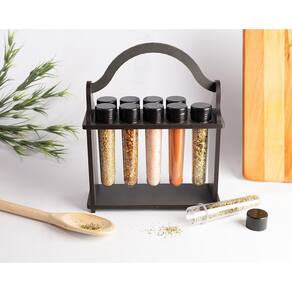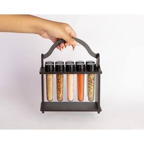 Dê um toque de praticidade e charme à sua cozinha com o nosso Suporte para Temperos. Único com alça que facilita o transporte e a movimentação entre suas receitas deliciosas