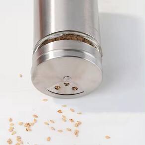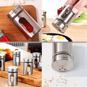 Os Potes tem tampa em inox giratória com 3 tamanhos de furos para permitir a saída do tempero conforme o tipo e sua necessidade.