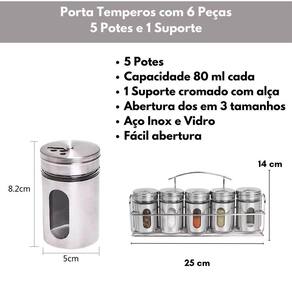 Kit Porta Temperos Condimentos 6 peças Aço Inox Com Suporte