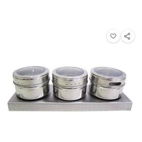 Porta temperos condimentos magnetico aço inox 316 - 3 peças Super kit com 3 porta temperos condimentos magnético inox 3 potes imã geladeira