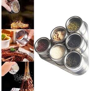 Kit porta temperos condimento 6 potes aço inox magnético imã Este porta temprero veio pra trazer facilidade e estilo pra sua cozinha, podem ser fixados em geladeiras, freezers, fornos,micro-ondas, não deixa cheiro nem gosto. Com seu visor de acrílico facilita a visualizar o mantimento, com as cavidades diferenciadas para permitir a saída do tempero. Completamente desmontável para limpeza e uma vedação completa sem vazamentos.