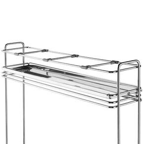 Este porta temperos em aço inox é ideal para instalação no interior do armário, colaborando para otimização de espaço em sua cozinha. O design inovador do porta condimentos deslizante conta com corrediças que permitem fácil acesso ao conteúdo armazenado. Com dois níveis, a gaveta porta temperos possui um espaço para armazenar garrafas de óleo com segurança, mantendo-as firmes no suporte. Este porta temperos deslizante é ideal para organizar os itens mais utilizados no preparo das refeições, ocupando um espaço inteligente no interior do móvel.