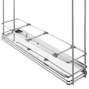Garantia: 90 dias / Peso: 4,1kg / Cor: inox / Ref: 7898455477521; Dimensões: 11,5cm (C) x 48cm (L) x 49,5cm (A); Dimensões do módulo de instalação:12cm (C) x 55cm (L) x 69cm (A); Possui opcional de fixação na porta e também divisores fixos que dão estabilidade ao acomodar frascos maiores; Capacidade: 5kg.