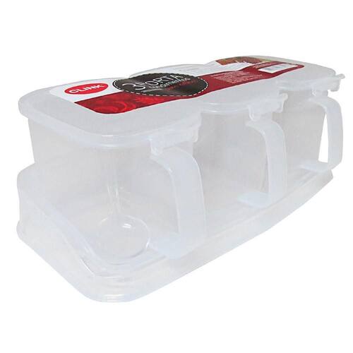 Porta Temperos e Condimentos com Colher Triplo De Plástico com Alça Cozinha Prática e organizada Ideal para você que quer manter sua cozinha limpa e organizada, sem deixar os temperos e condimentos espalhados. Com tamanho ideal para suas necessidades São 3 potes e colher em plástico com suporte Cuidados: Limpe bem antes do primeiro uso Os potes não possuem função selante Mantenha sempre em local seco e arejado Dimensões: 22,5 x 11,5 x 8 cm Material: Plástico Cor: Transparente Ean: 7899850335478