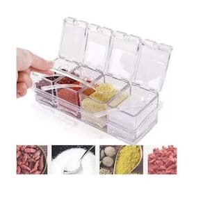 Porta Temperos Em ACRILICO com Colher 4 Partes Ideal para você que quer manter sua cozinha limpa e organizada, sem deixar os temperos e condimentos espalhados. Com tamanho ideal para suas necessidades. São 4 potes em acrílico destacáveis com tampas de tipo prensa e equipadas com colheres. Fácil de procurar esses ingredientes escondidos.