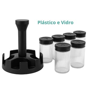 ? Marca: Belovidro ? Contém: 6 potes de vidro (capacidade 85ml cada) ? Material: Plástico e Vidro ? Base Giratória 360° ? Perfeito para organização e praticidade na cozinha ??