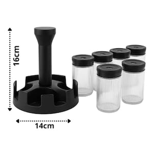 Porta Temperos Giratório 360° com 6 Potes de Vidro Premium de Vidro 85ml - Tampa Dosadora Preta Belovidro - PANAMI