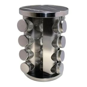 Porta temperos giratório inox 16 potes design mármore preto Cor: mármore preto O porta temperos e condimentos giratório 16 peças de aço e vidro da quick store é super funcional, prático, tem um formato ergonômico e moderno, podendo armazenar todos seus condimentos de forma correta e em um mesmo local. Tenha a praticidade, organização e beleza que sua cozinha merece Material de alta qualidade, com estrutura giratória, de fácil instalação e uso, otimizando espaço de maneira eficiente. A base rotativa permite um movimento de 360 graus, permitindo a fácil escolha do que precisa para dar a sua comida o melhor sabor. Cada frasco é equipado com uma peneira que permite um temperamento controlado e preciso, exatamente como deseja. Todos os temperos necessários à mão Características: Possui base giratória: visualize todos os temperos com um simples giroMaterial: vidro e aço inoxPossui 16 potes de 80gDesign: estilo mármore preto Estrutura principal Altura: 28cmLargura: 18cmProfundidade: 18cmAltura do pote: 9,5cmDiâmetro do pote: 4,5cmPeso total: 2.300 kg. Tamanho da embalagem: 20x20x29cm Inovação, design, praticidade e solução Obs: tampas encapadas com plástico de proteção azul que deve ser tirado antes do uso